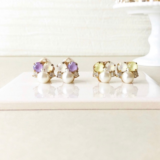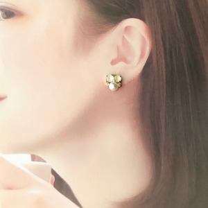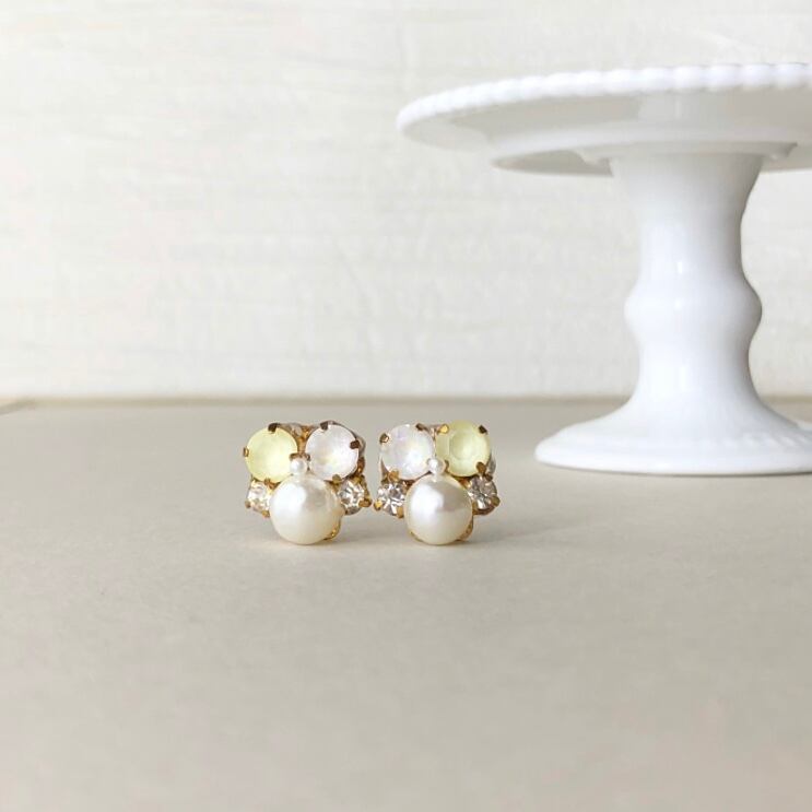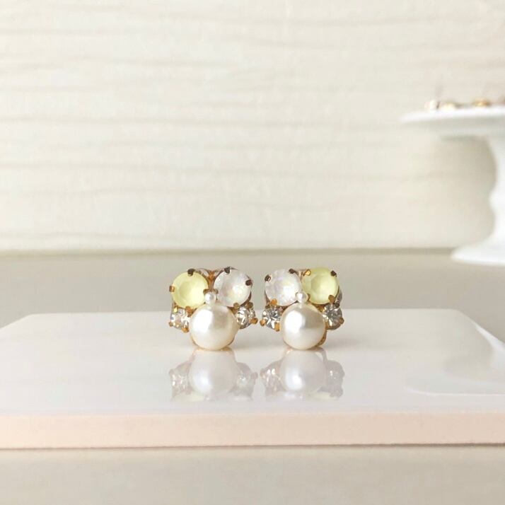 ライトイエロー パールビジュー ピアス イヤリング